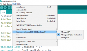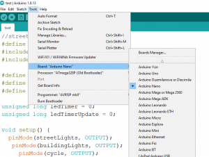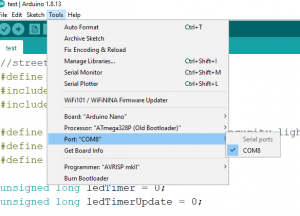 The next step is to establish communications between your computer and the board. Go to port and click on the port that shows the check mark.