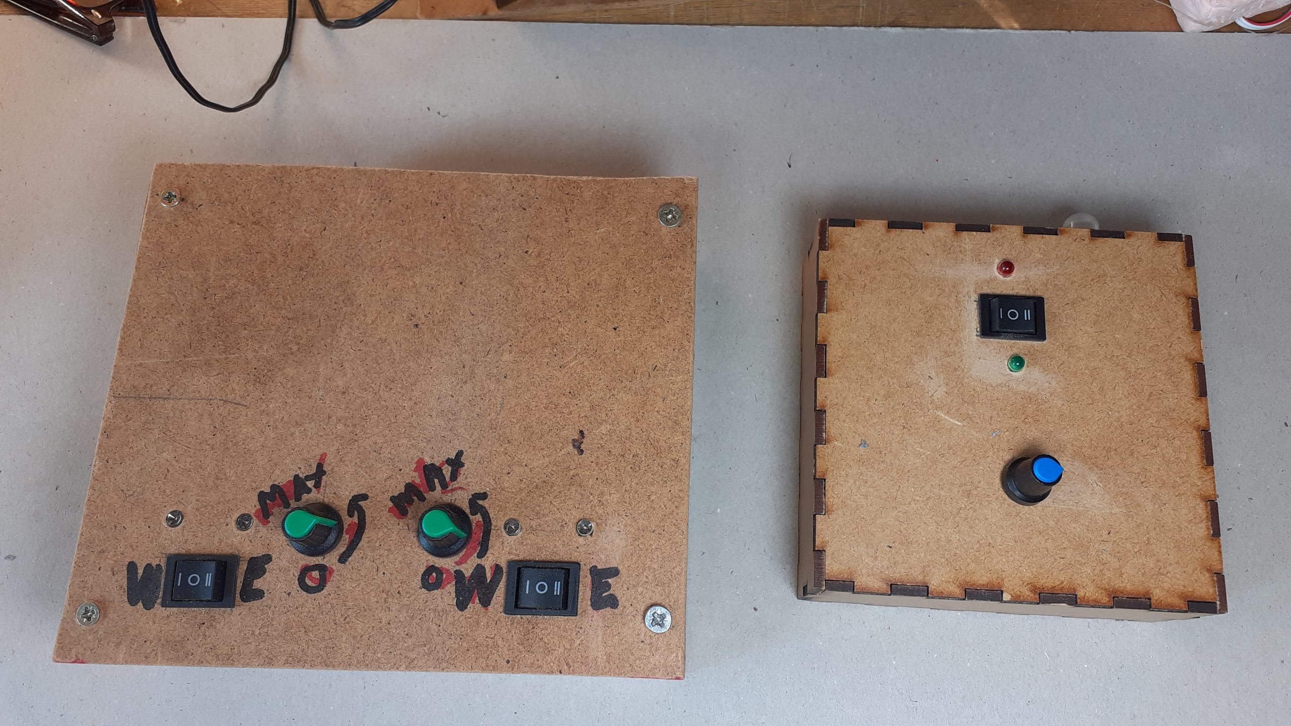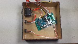 The motor controller and circuit breaker are in a laser cut box. That box is a optional choice with the kit. Alternatively, you can either make your own box or use a commercial container.