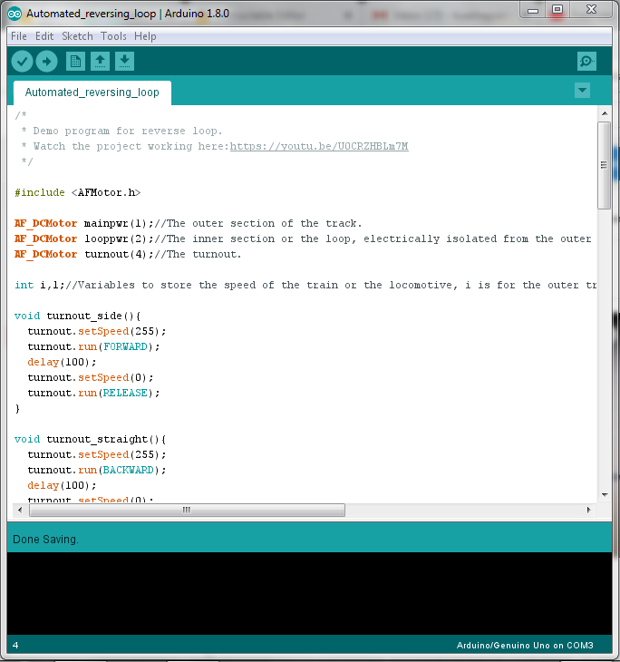 Now that you have got the example setup running, you can further add another reverse loop on the other end of the outer track to make the train go running in both the directions on a single track without any interruption(you will need to modify the Arduino program for that). Show off your skills by modifying the Arduino program to increase the functionality of this project or just simply let me know what you did with this. Let me know if you made this project to help me know if this was useful to you at all.